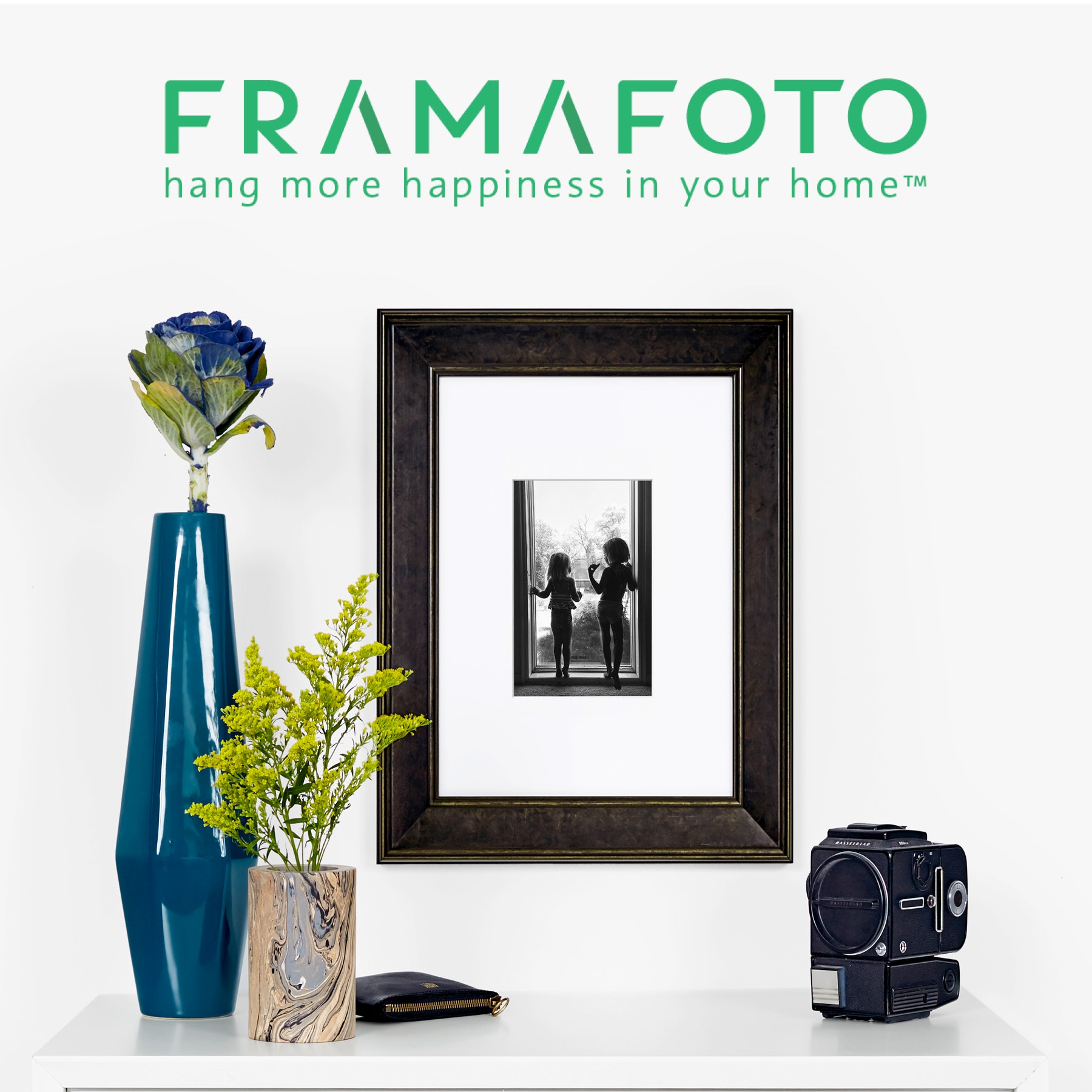 "Get creative with the most intuitive framing app on the market. Now it’s incredibly easy, and loads more fun, to get your favorite photos or digital art, printed, framed, and delivered in as little as 5 days.
